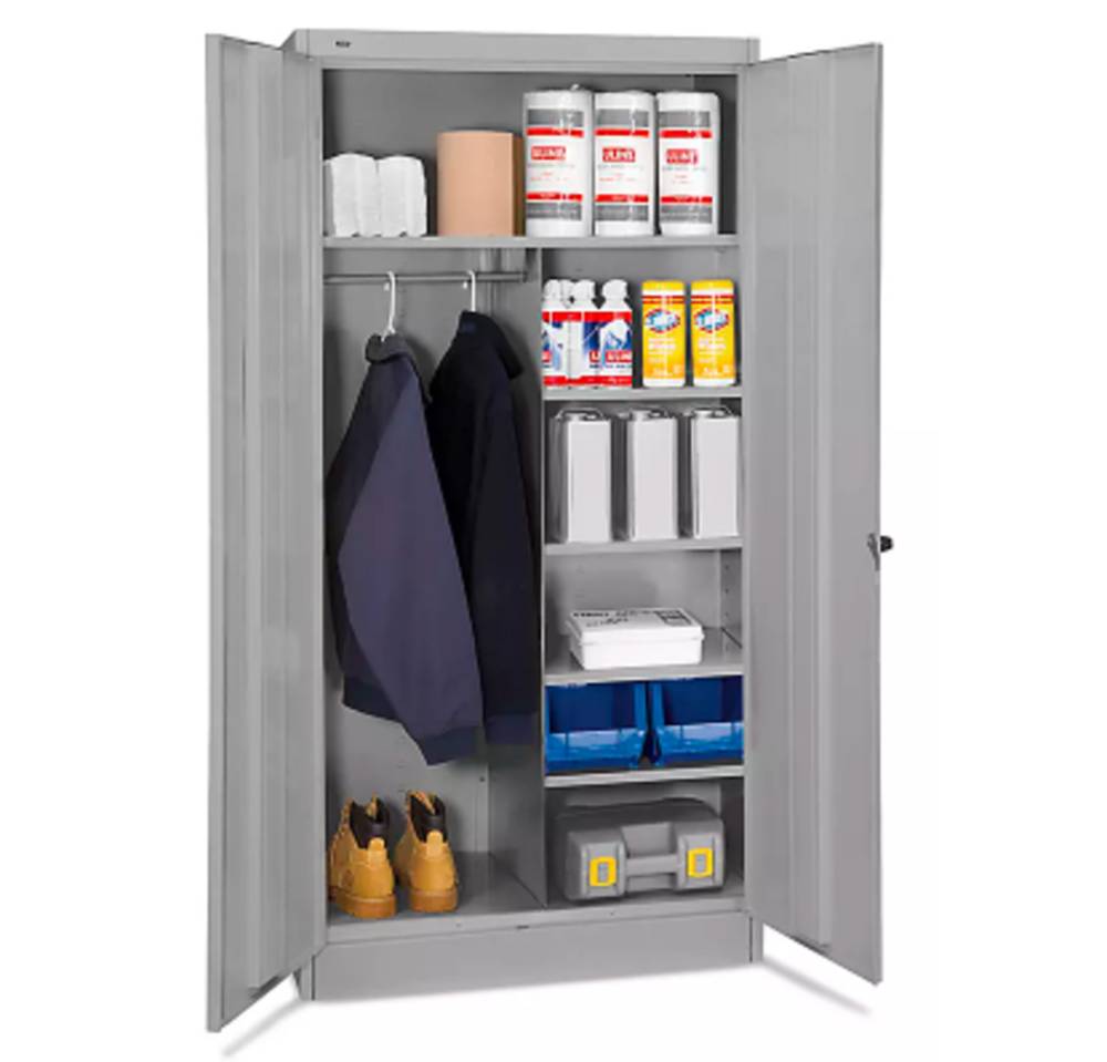El Gabinete de Suministros ULINE es una solución robusta y funcional diseñada para almacenar y organizar insumos de limpieza, mantenimiento y seguridad de forma ordenada y segura. Su diseño profesional permite mantener productos y herramientas protegidos, accesibles y perfectamente organizados en espacios comerciales, industriales e institucionales.