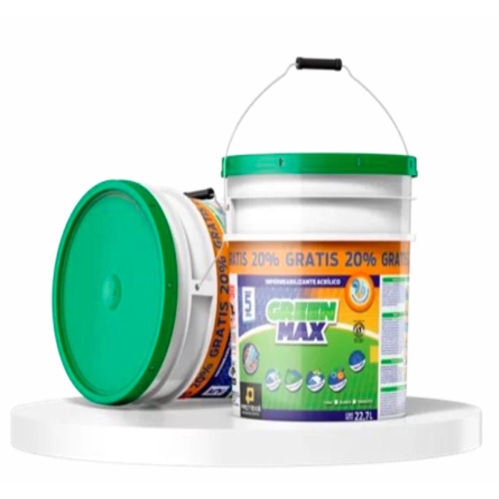 El impermeabilizante Green Max es un recubrimiento acrílico elastomérico ecológico, diseñado para proteger techos, losas y cubiertas contra filtraciones, humedad y rayos UV. Su fórmula avanzada base agua y libre de solventes garantiza una aplicación segura, sin olores fuertes ni contaminantes, cuidando tanto el medio ambiente como tus espacios.