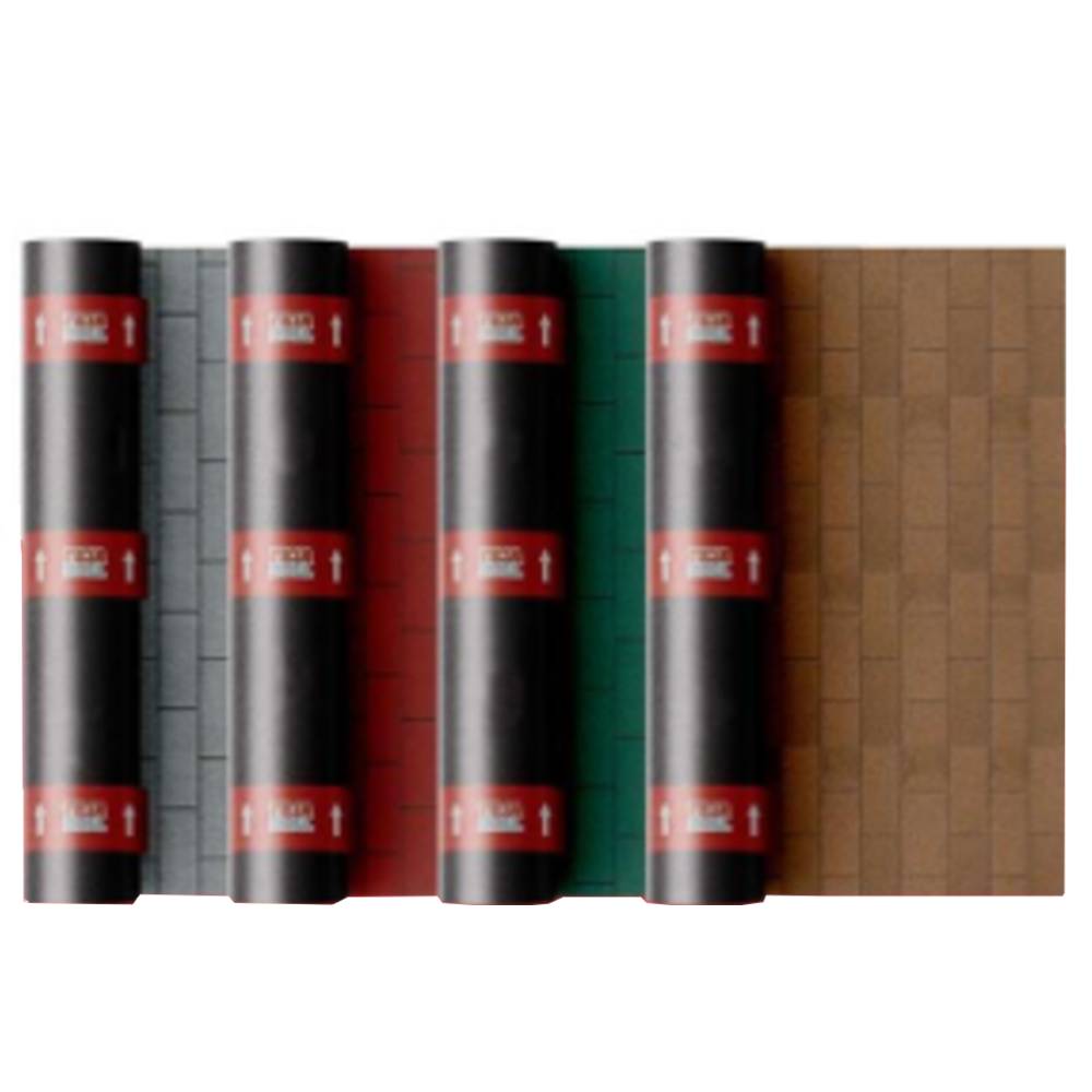 Sistema prefabricado, elaborado con asfalto modificado SBS/APP, un refuerzo mecánico central de fibras de vidrio de 78gr con 3.5mm de espesor total y una garantía de 7 años o de fibra poliéster de 180gr/m2, con 4.0mm de espesor total y una garantía de 12 años. En ambos casos, tiene una pelicula de polietileno en su cara inferior y gravilla de colores esmaltada a alta temperatura en su cara superior, con la singularidad de un diseño que simula la apariencia de la teja asfáltica.