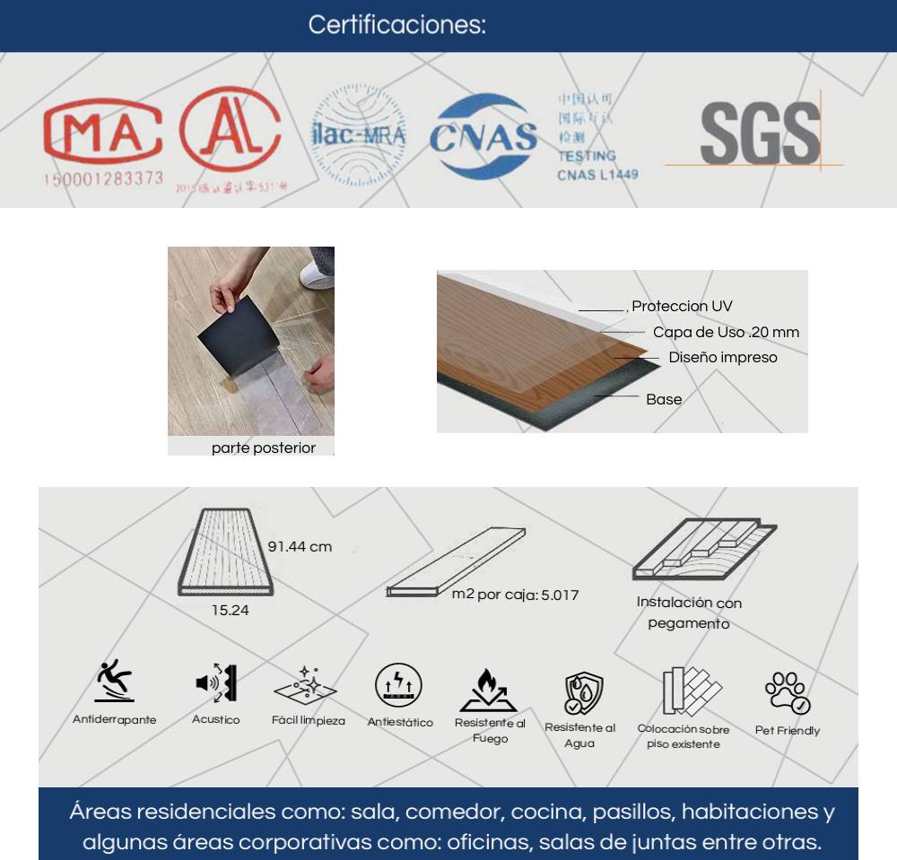 Este piso destaca por su instalación ya sea con sistema clic o pegado, lo que permite adaptarse a distintos tipos de proyecto. Su mantenimiento es mínimo y su resistencia al tráfico cotidiano lo posiciona como una alternativa moderna, accesible y funcional para cualquier espacio interior.