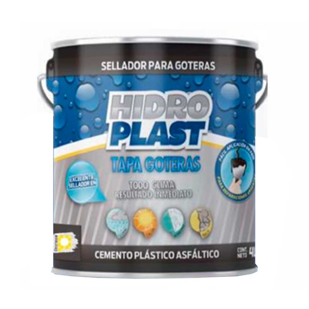 *Hidroplast (wet patch) es un cemento plástico asfáltico de aplicación en frío, fibratado con cargas minerales y aditivos especiales que le permiten sellar aún en condiciones de lluvia y alta humedad en las losas. Hidroplast se utiliza para sellar grietas y fisuras en los techos secos o mojados, ideal para el sellado de ángulos o chaflanes , ductos, juntas verticales y horizontales, bajadas pluviales, bases de tinacos y en general todas aquellos punto críticos que sean propensos a entrada de humedad. Hidroplast es apropiado para sellar bajo condiciones de lluvia o losas con alta humedad.